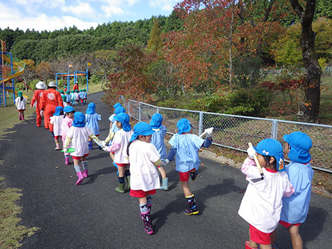 さんぽぐみ(2歳児クラス)のお友だちも一緒に行きました。