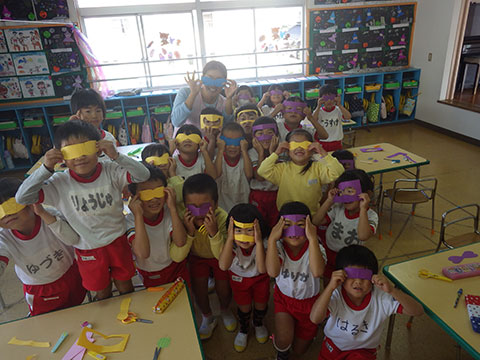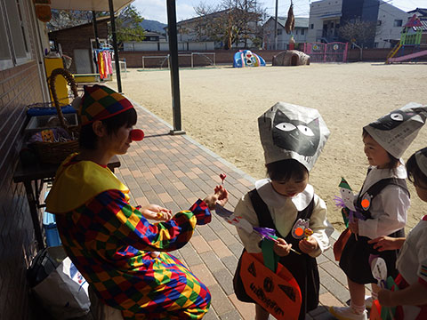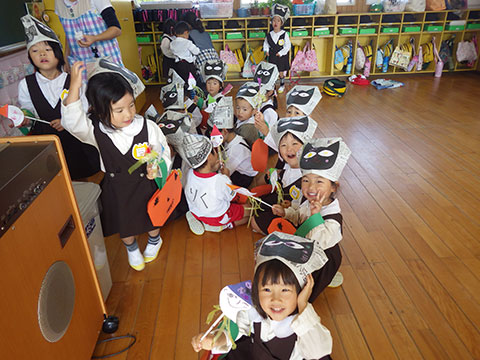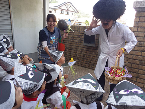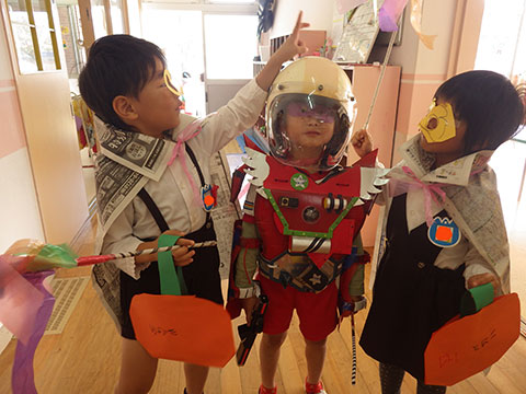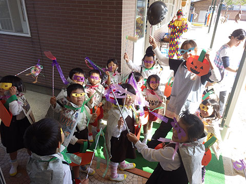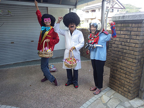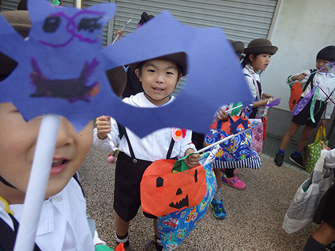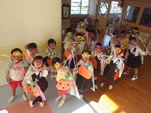 おばけの格好では怖いので、子どもたちに馴染みのある格好を
