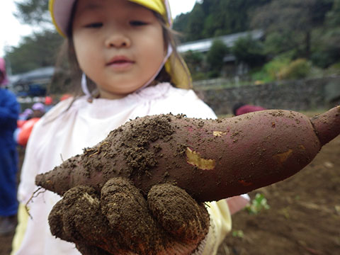 大きいお芋は手を大きく、
