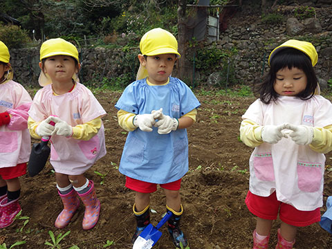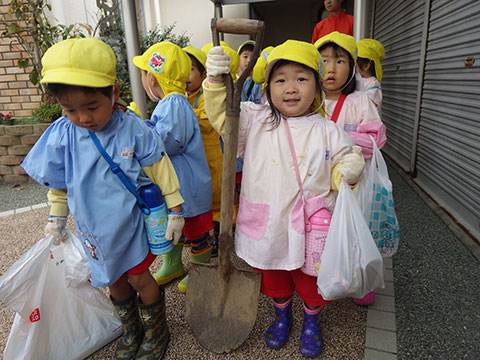 明日はまず、年長児が芋掘りに行きます