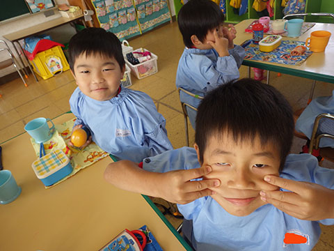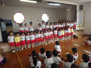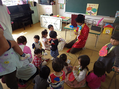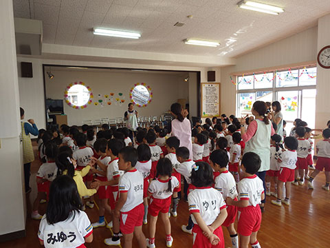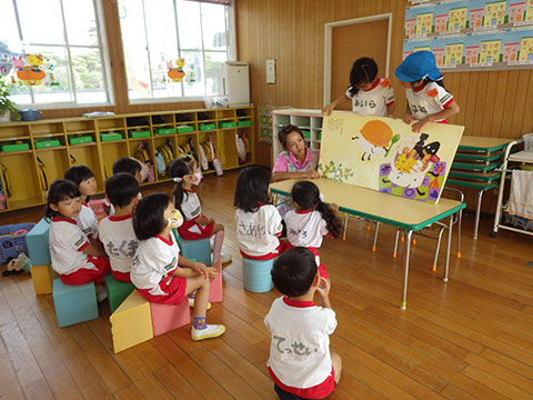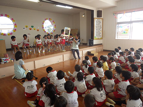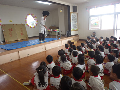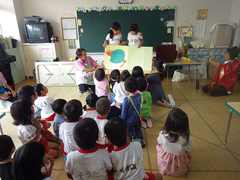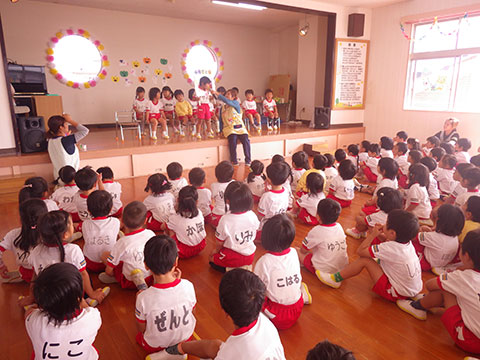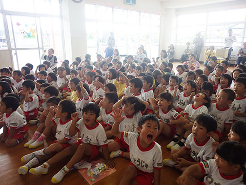教室内で大型絵本を読んだり、初のノリノリSHOWを観たり・・