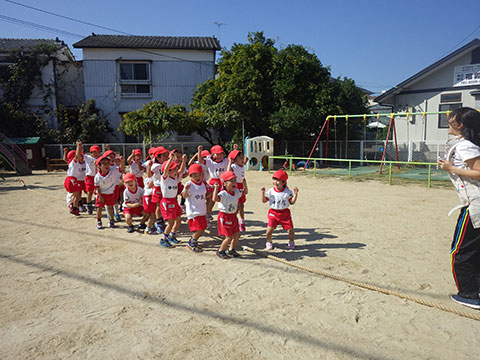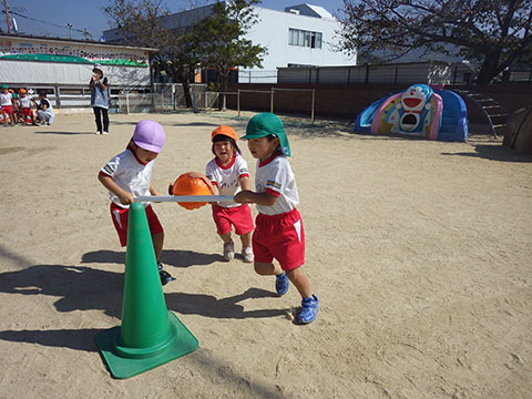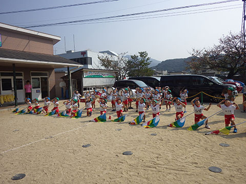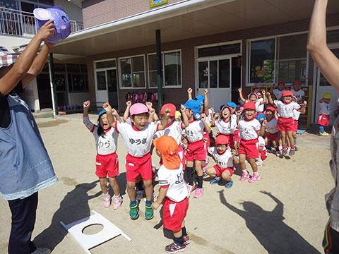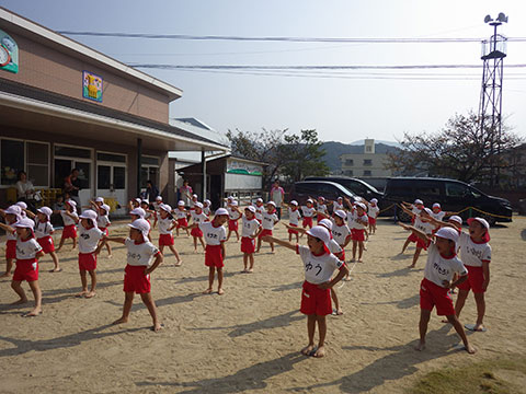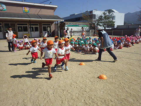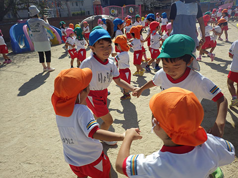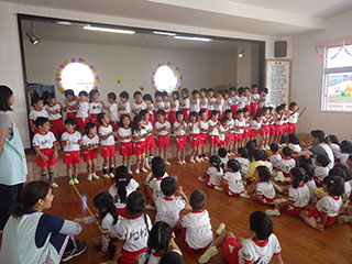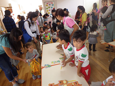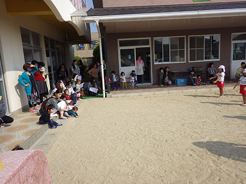 保護者の方々におゆうぎ室へ入ってもらい、離れているときは