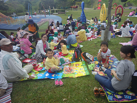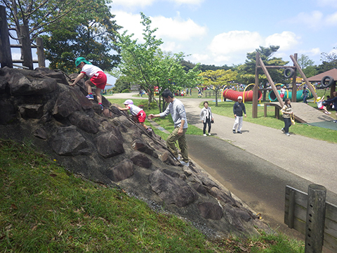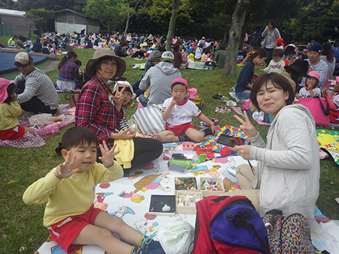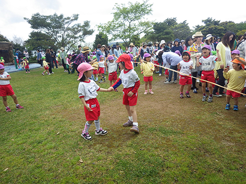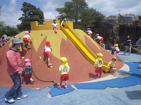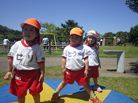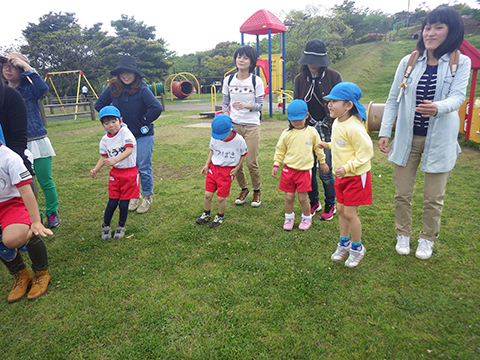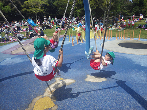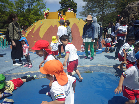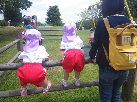 今回の遠足でこうしてあそんでいた年少組の園児たち。