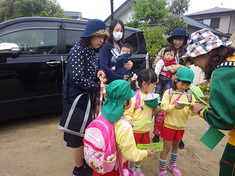 幼稚園に集合したら、自分の名前が書かれた紙をもらってから