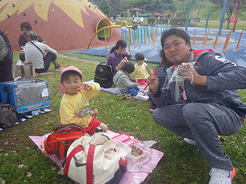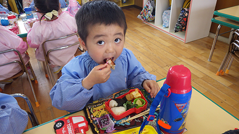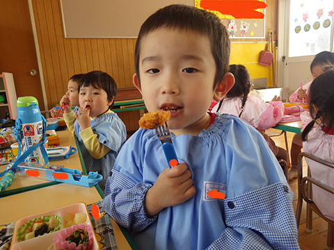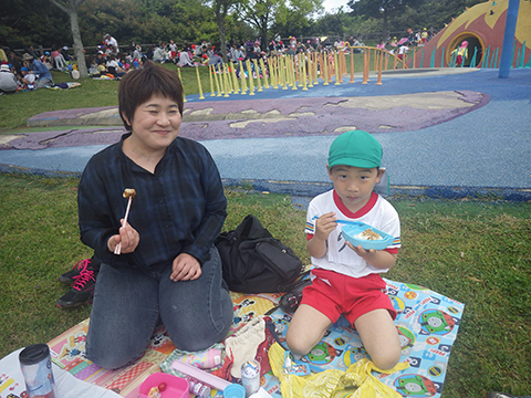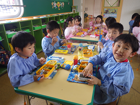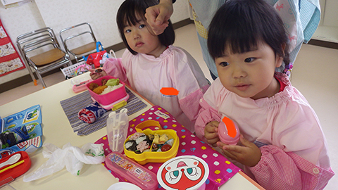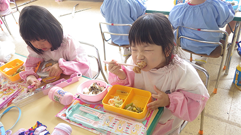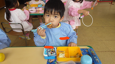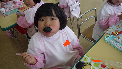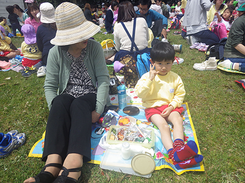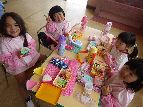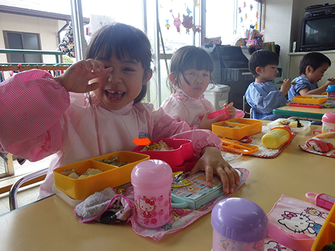 体操、クイズであそんでからは少し早めのお弁当の時間