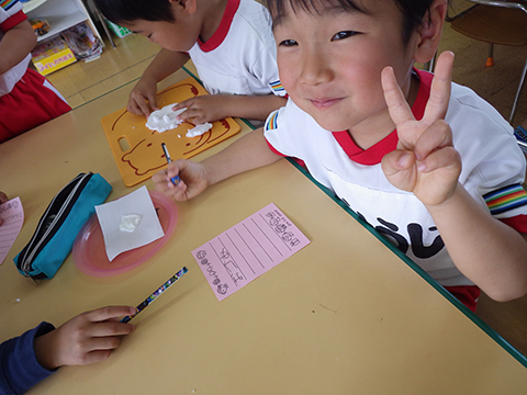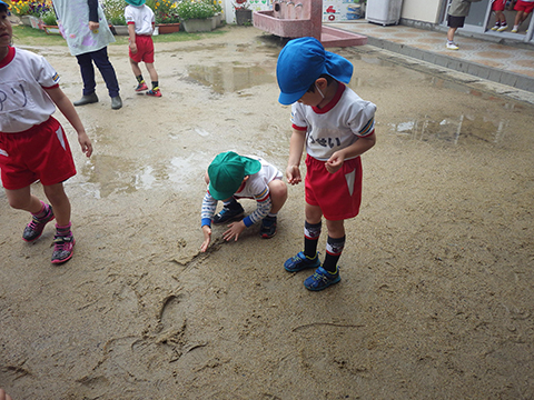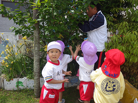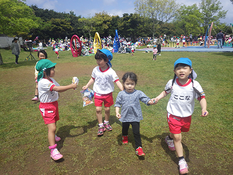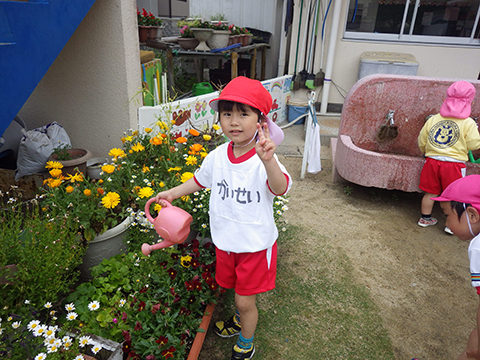 新入園児もずいぶんと幼稚園に慣れ、涙も止まりました。