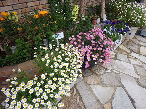 玄関も、園庭も花が満開のこの季節、