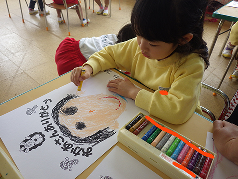 年長児は粘土を使い、メッセージ付き