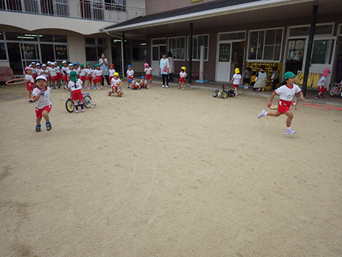 園児用のトラックでおこないますが今はまだリレーも
