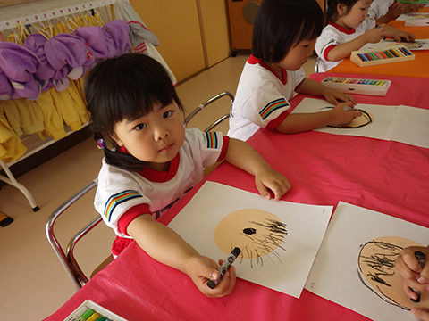 当番表に貼る自分の顔を製作
