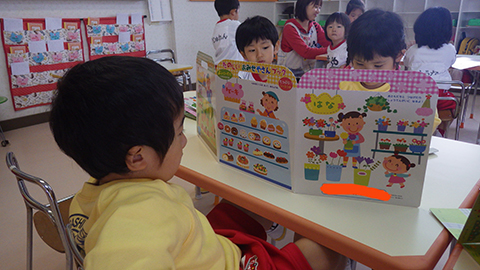 年少児は絵本を読んだり、付録を作ったり