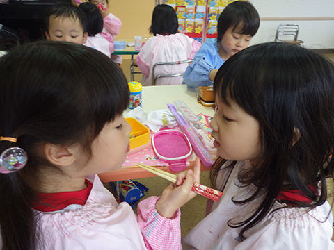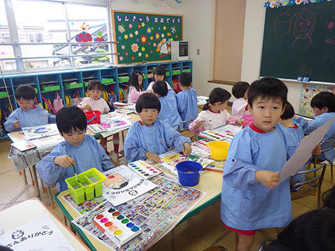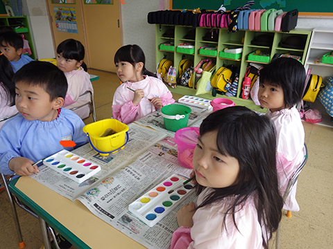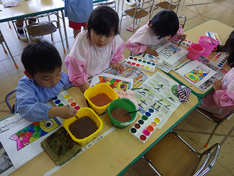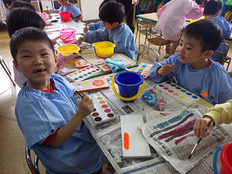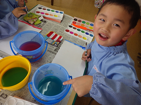 年長児になっての新たな取り組みの1つ。絵の具