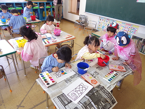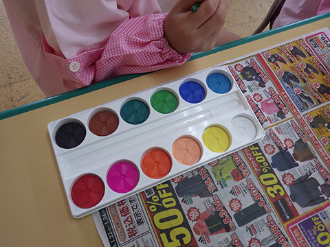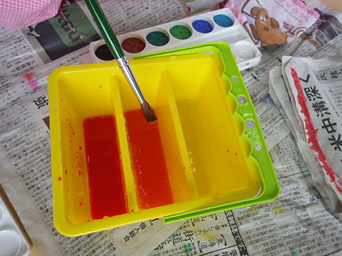 こいのぼり製作には絵の具を使用しますが、