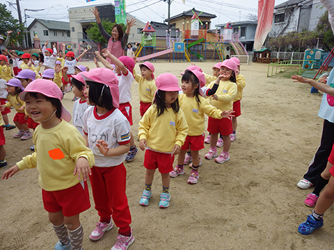 今朝も全園児で体操の練習をおこないました