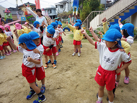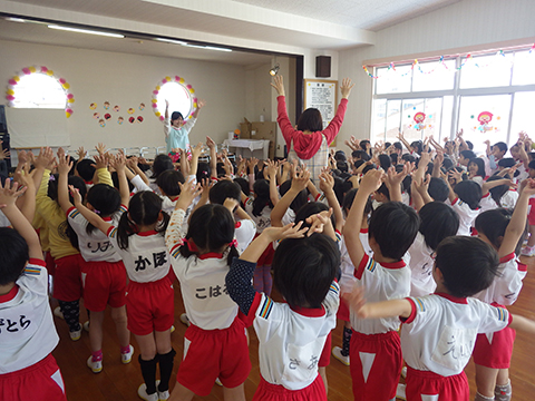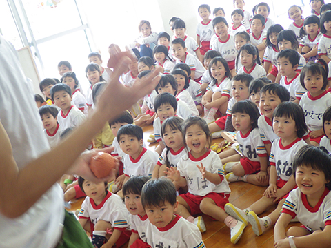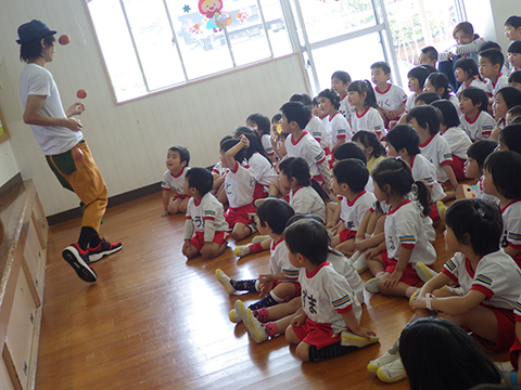 はじめて観るパフォーマンスに新入園児が固まります