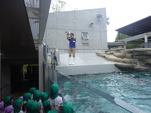 飼育員さんがペンギンを抱っこして見せてくれました