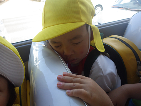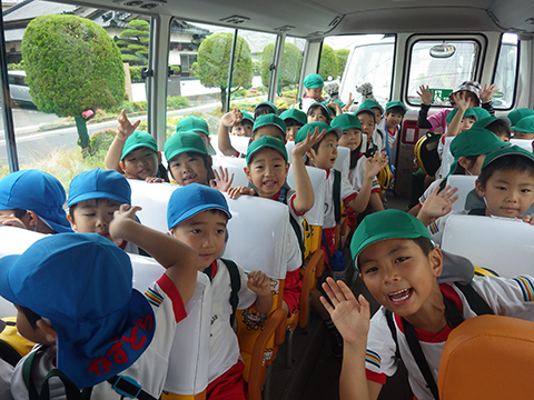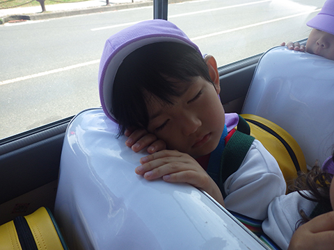 「いってきまーす!!」でバスに乗り込み、