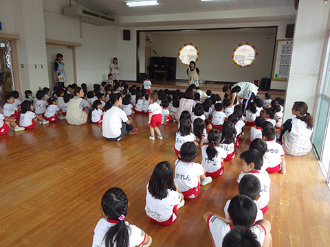 今日はおゆうぎ室に全員集まってのおはじまり。