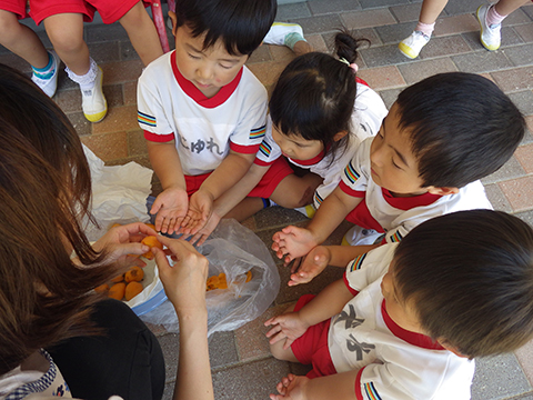 卒園児のおじいちゃん、おばあちゃんからビワの差し入れを