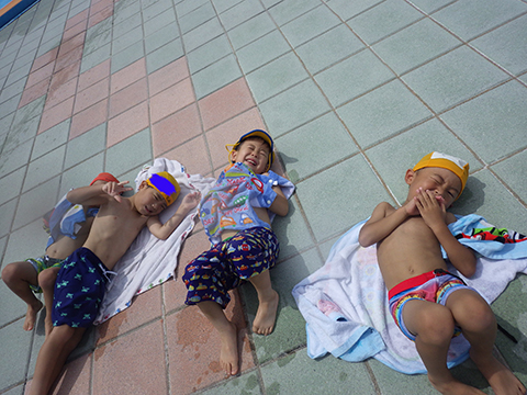 連休中、海やプールに出かけた子も多く、
