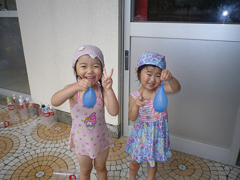 水風船や穴を空けたペットボトルで水あそび満喫