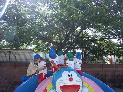 園庭のセミだけでは物足りず、近所の公園まで遠征