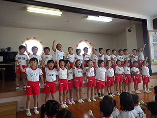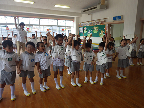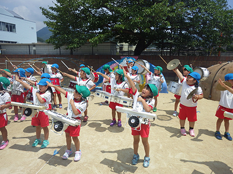 園庭ではセミの大合唱がはじまり、マーチングの音に