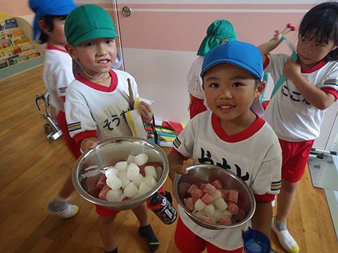 年長児の一泊二日のキャンプや夏期保育、夏祭りと
