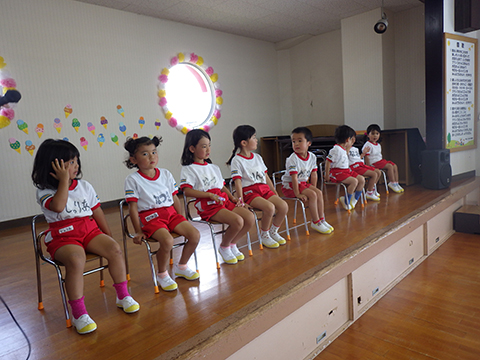 おゆうぎ室に集まって、夏休みの約束と