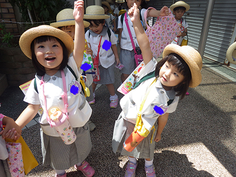 年中児がたこちゃんプールへ出発!