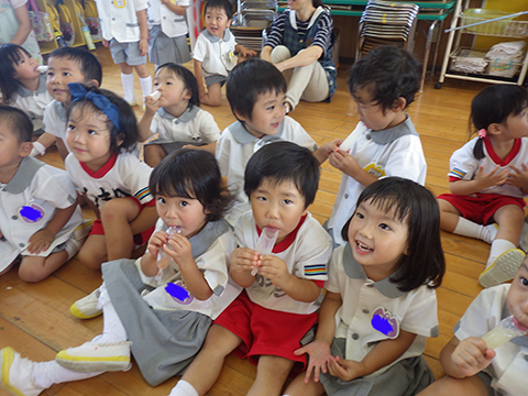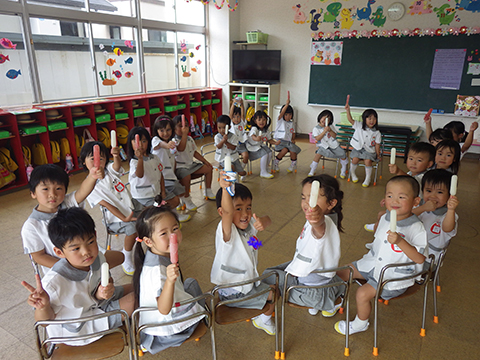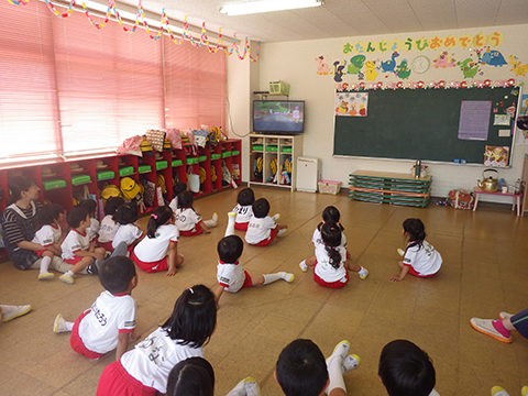 8月は夏休みですので、今日は8月生まれの誕生会
