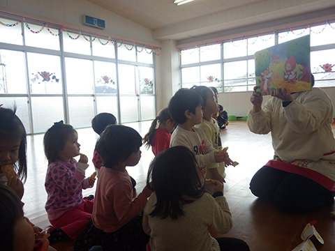 遊んで、踊って、製作して、おやつを食べて、紙芝居を観て・・