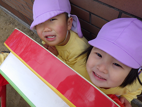 子どもたちは2階のおゆうぎ室で、一番みんなの気持ちがわかるであろう