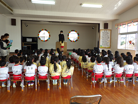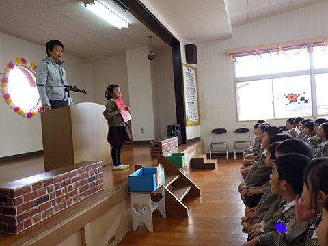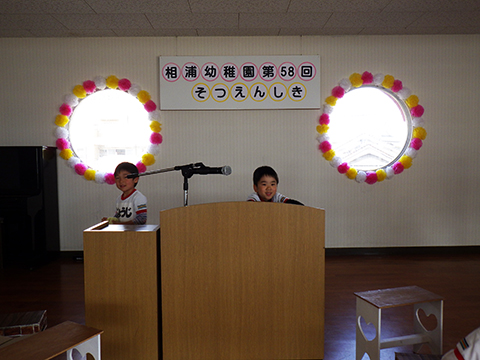 在園児、贈る言葉と卒園児、おわかれの言葉。