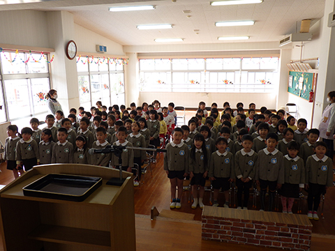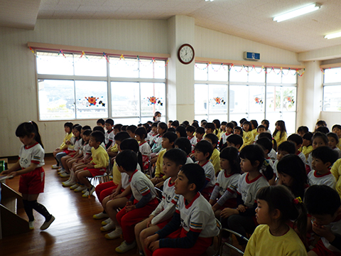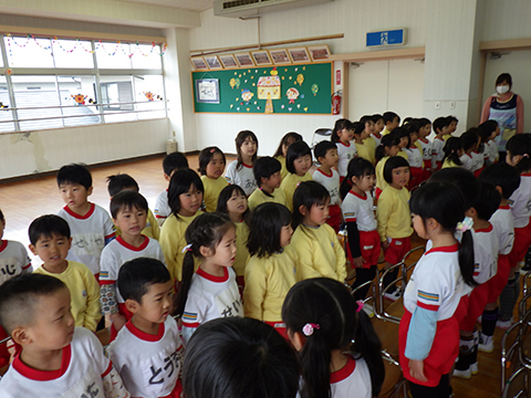 全園児での園歌斉唱。