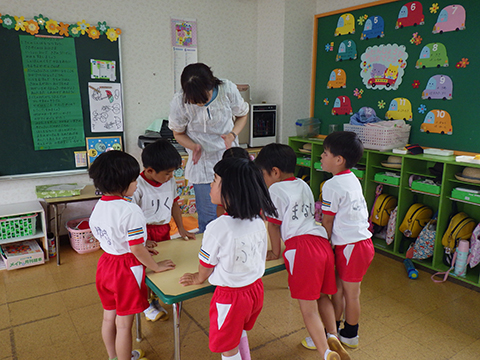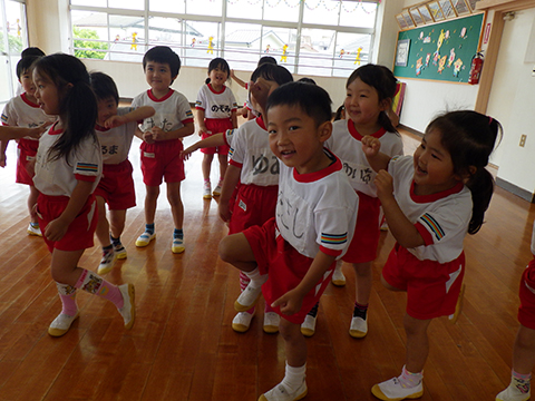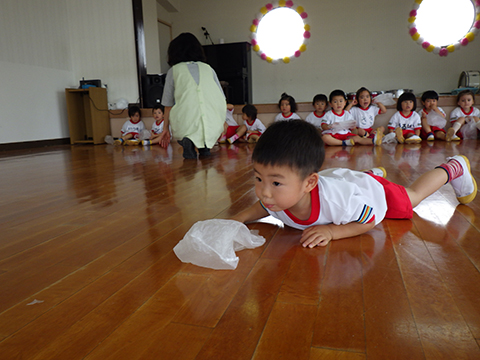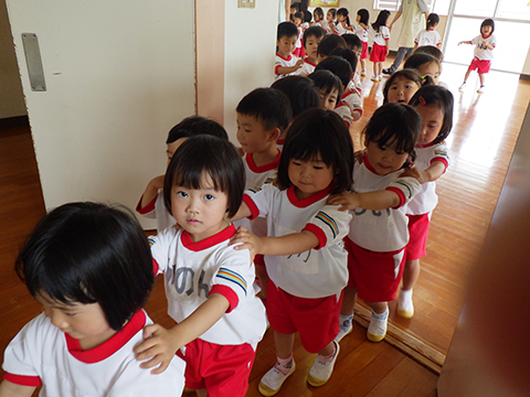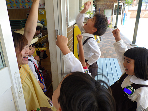 「では、どうぞ!」の声に、普段であれば一斉に駆け出す園児たちですが、