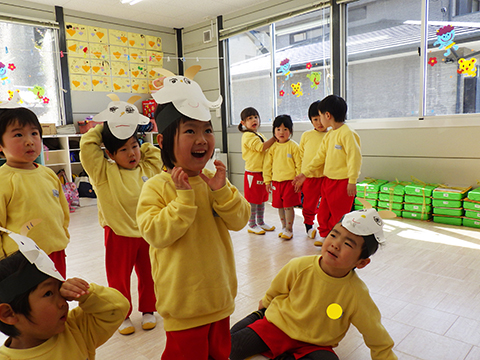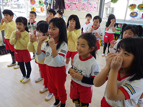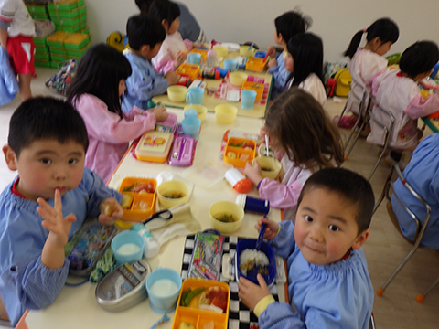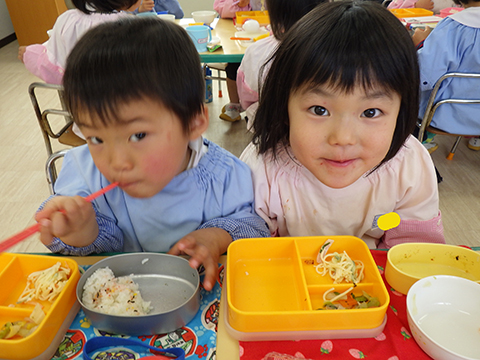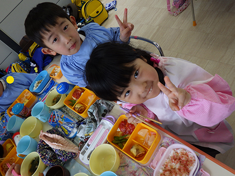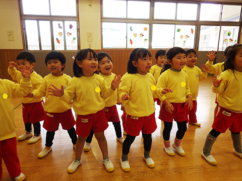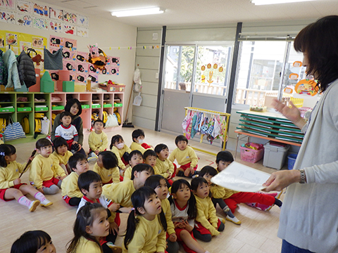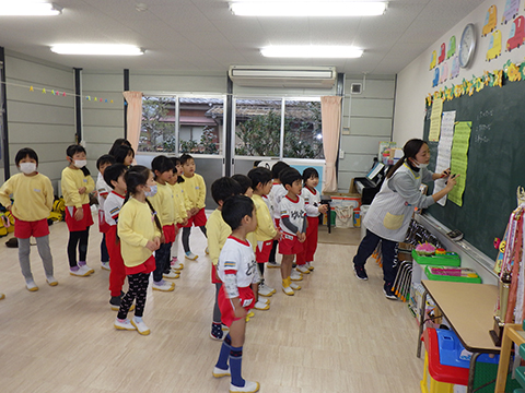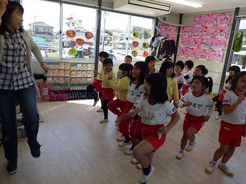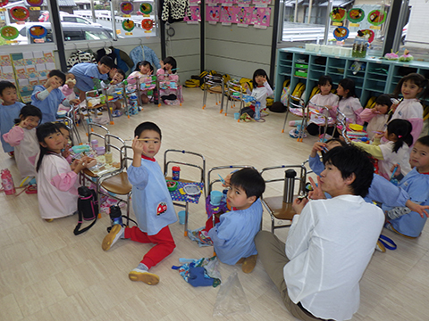 年長児は徒歩で、年中少児はバスで近くまで行きます