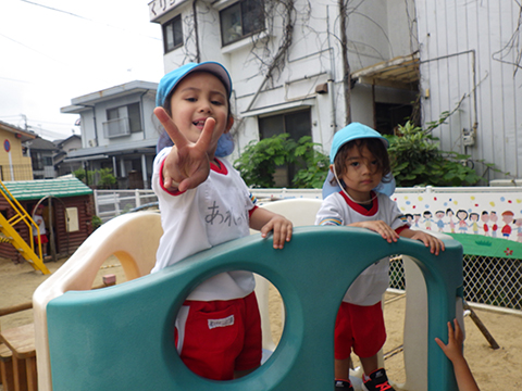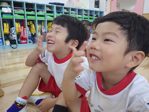 カメラを向けると変顔をするまでの余裕が出てきた年少児!