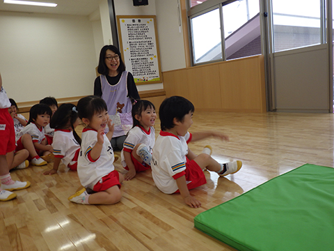 東相浦幼稚園年長児、ひかりぐみも一緒にリレー対決