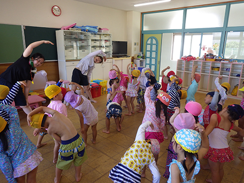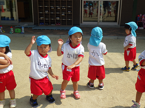 体操係の園児たちが前に出てやってくれます。