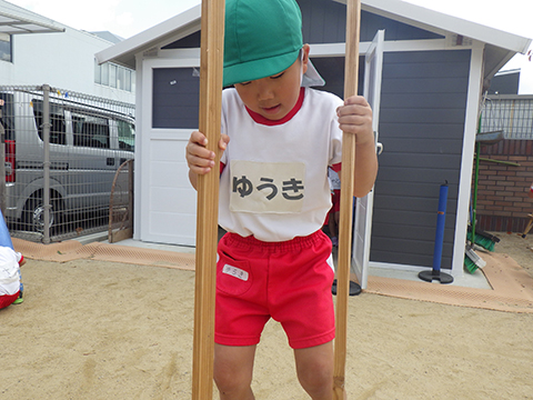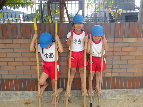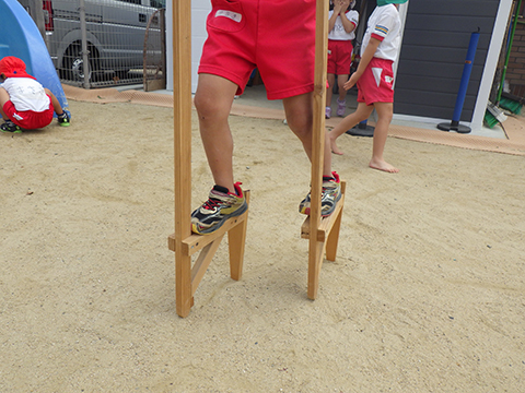 そんなときには、昔遊び名人が竹馬をこんなふうに加工!