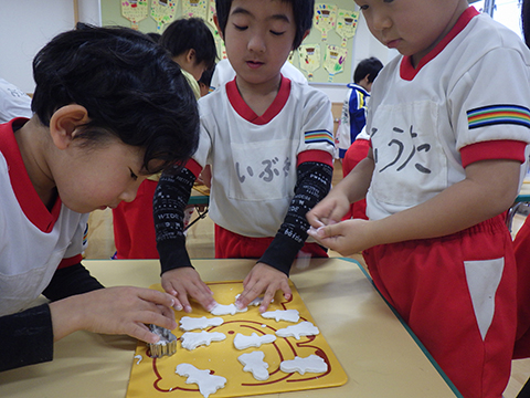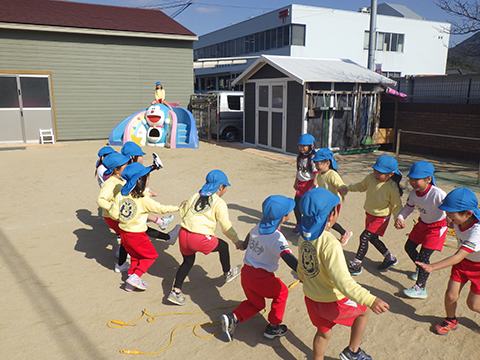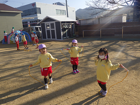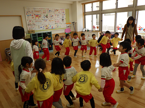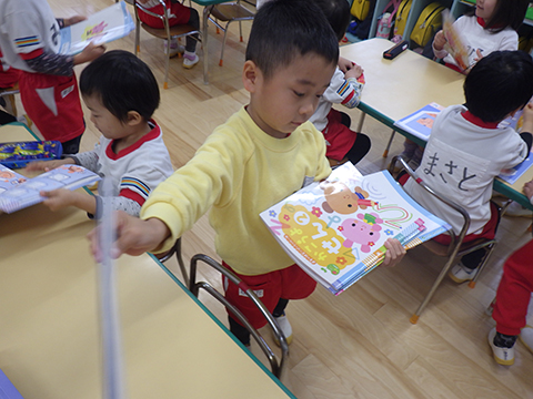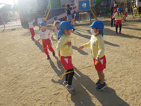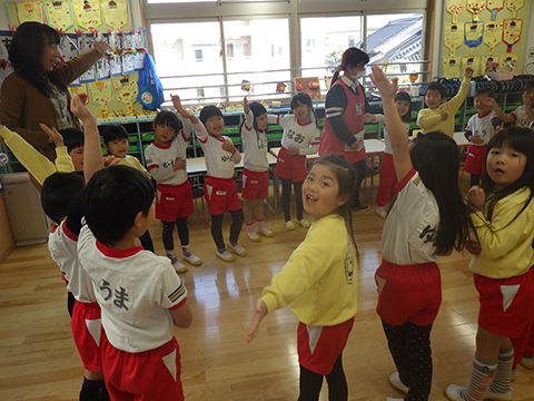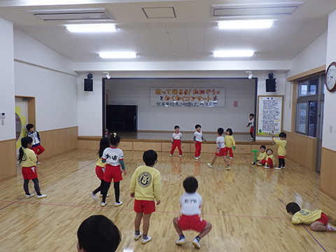 登園後はすぐにおゆうぎ室で練習と調整に余念がありません