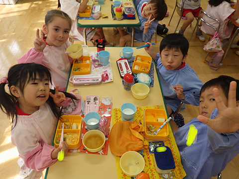 今日の給食はシチュー、そしてデザートはハロウィーン仕様