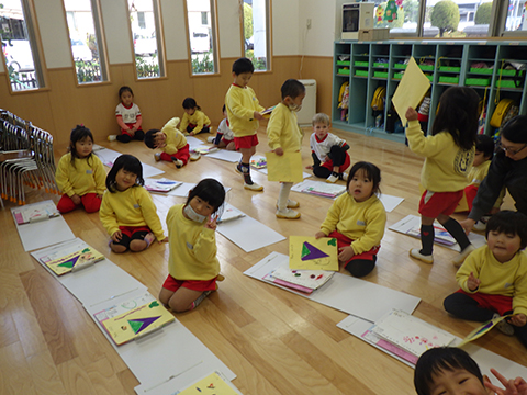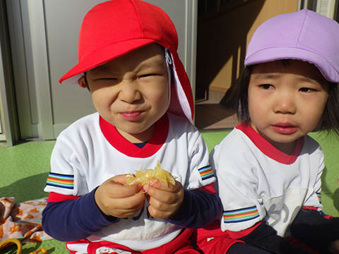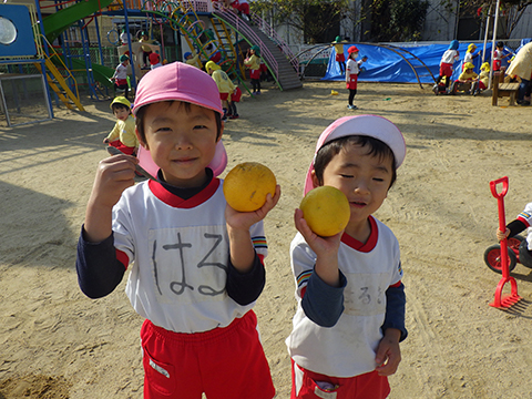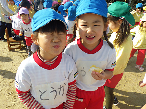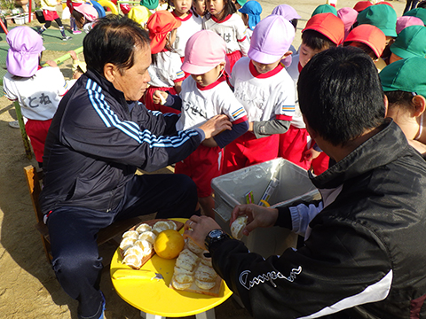 心臓をドキドキさせながらクラスの代表の園児がもらいました