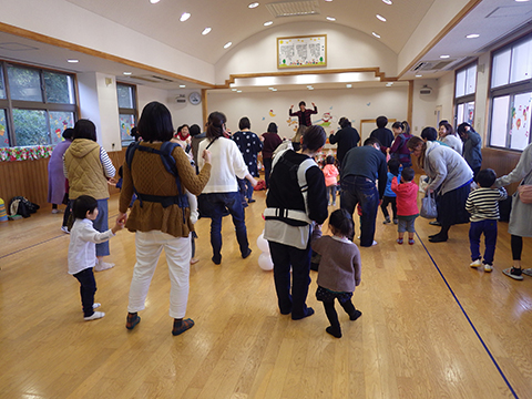 おゆうぎ室に集まってクリスマス会スタート