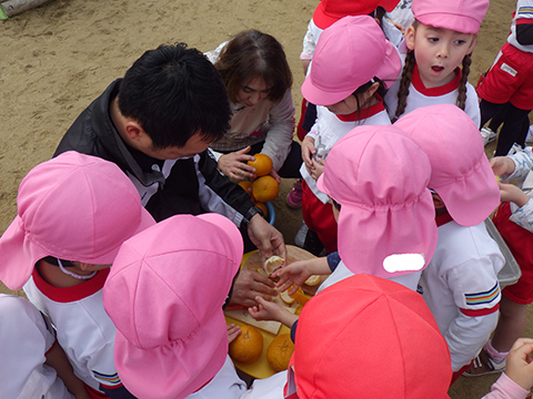 園庭に面している側は特製の器具で穫れるけど、