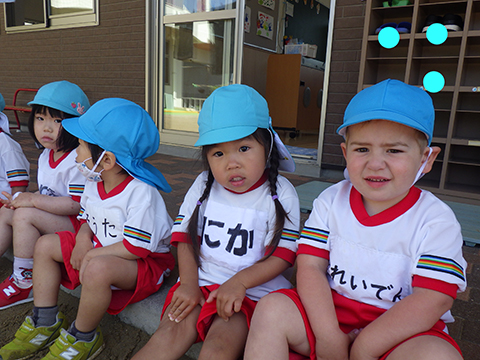 今朝は全員集まって5月入園の新しい友だちを紹介
