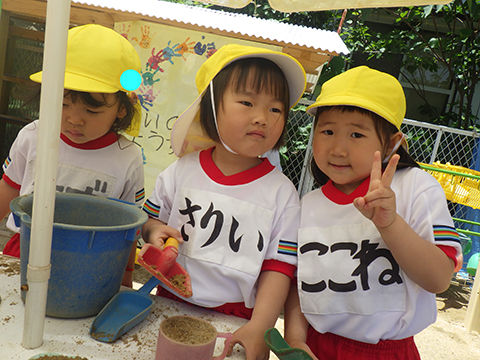 自粛期間中の動画配信「園庭で遊ぶときの約束」に出ていた方々。